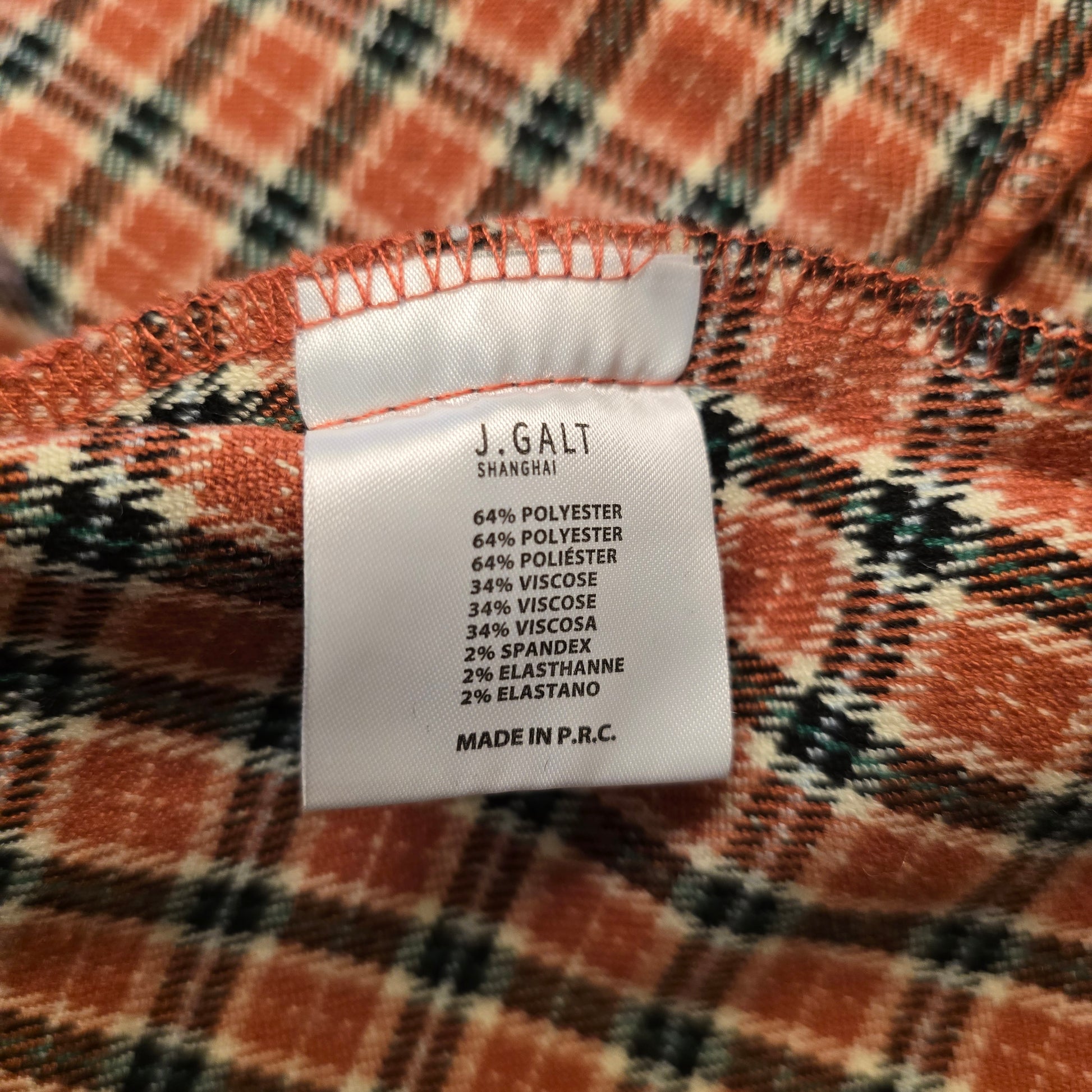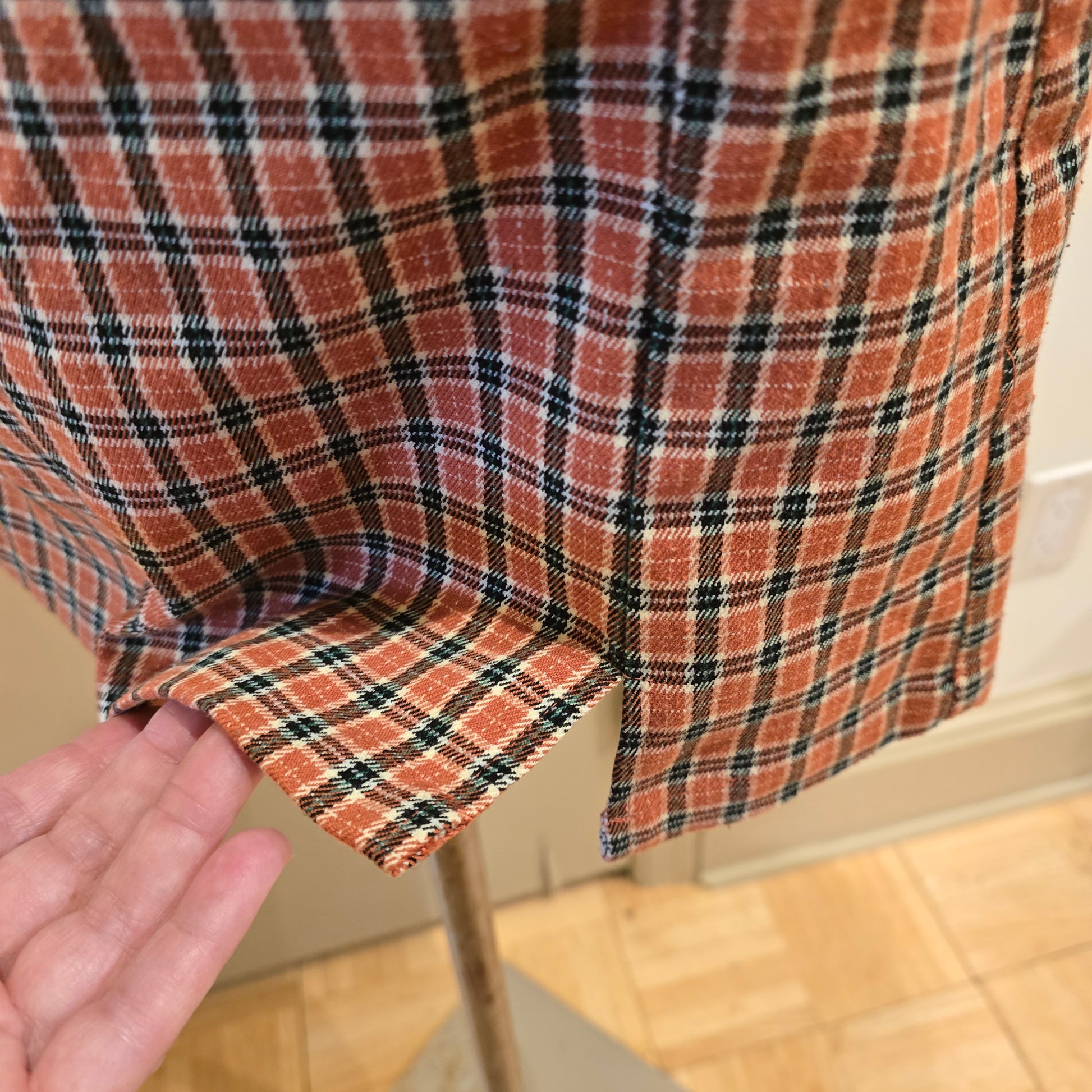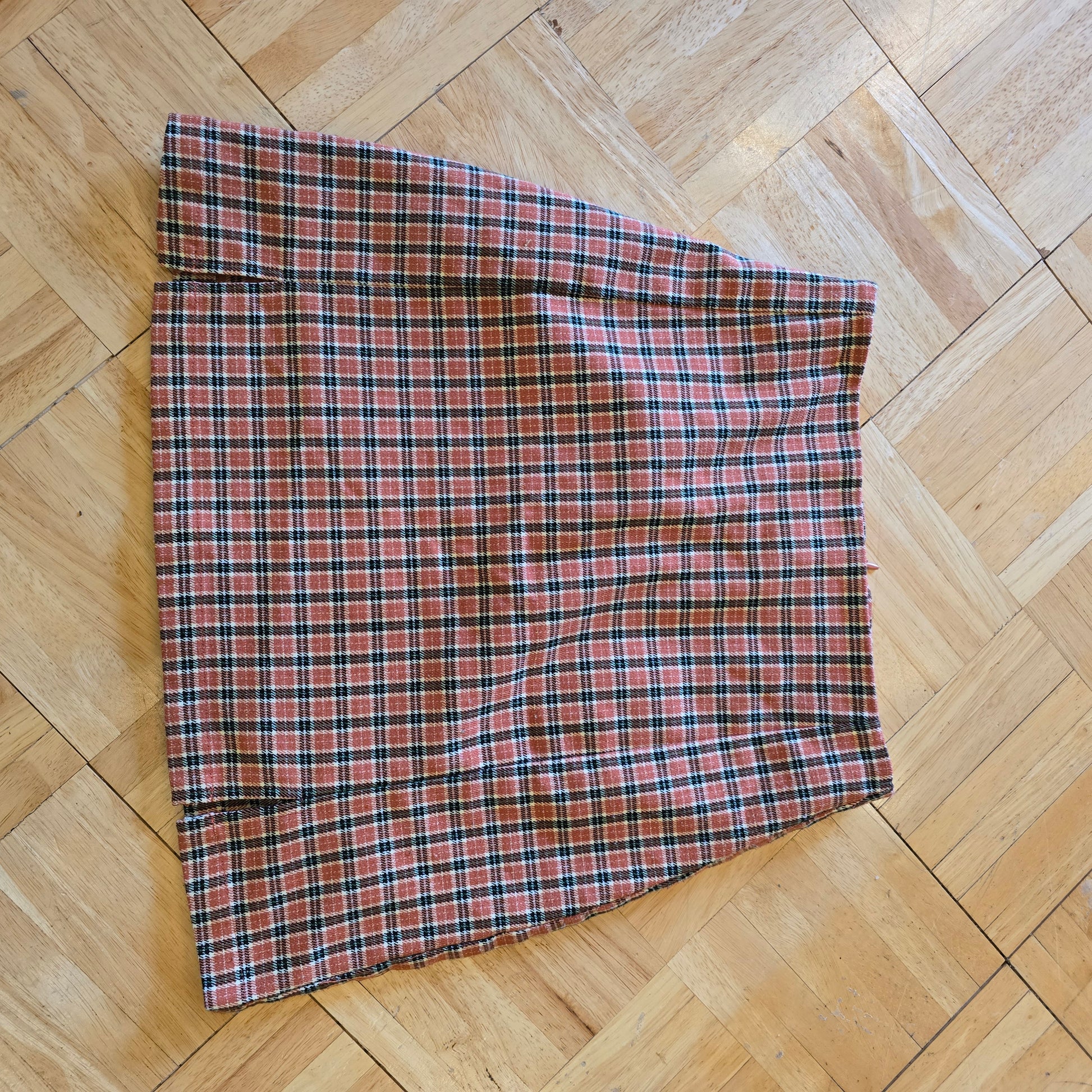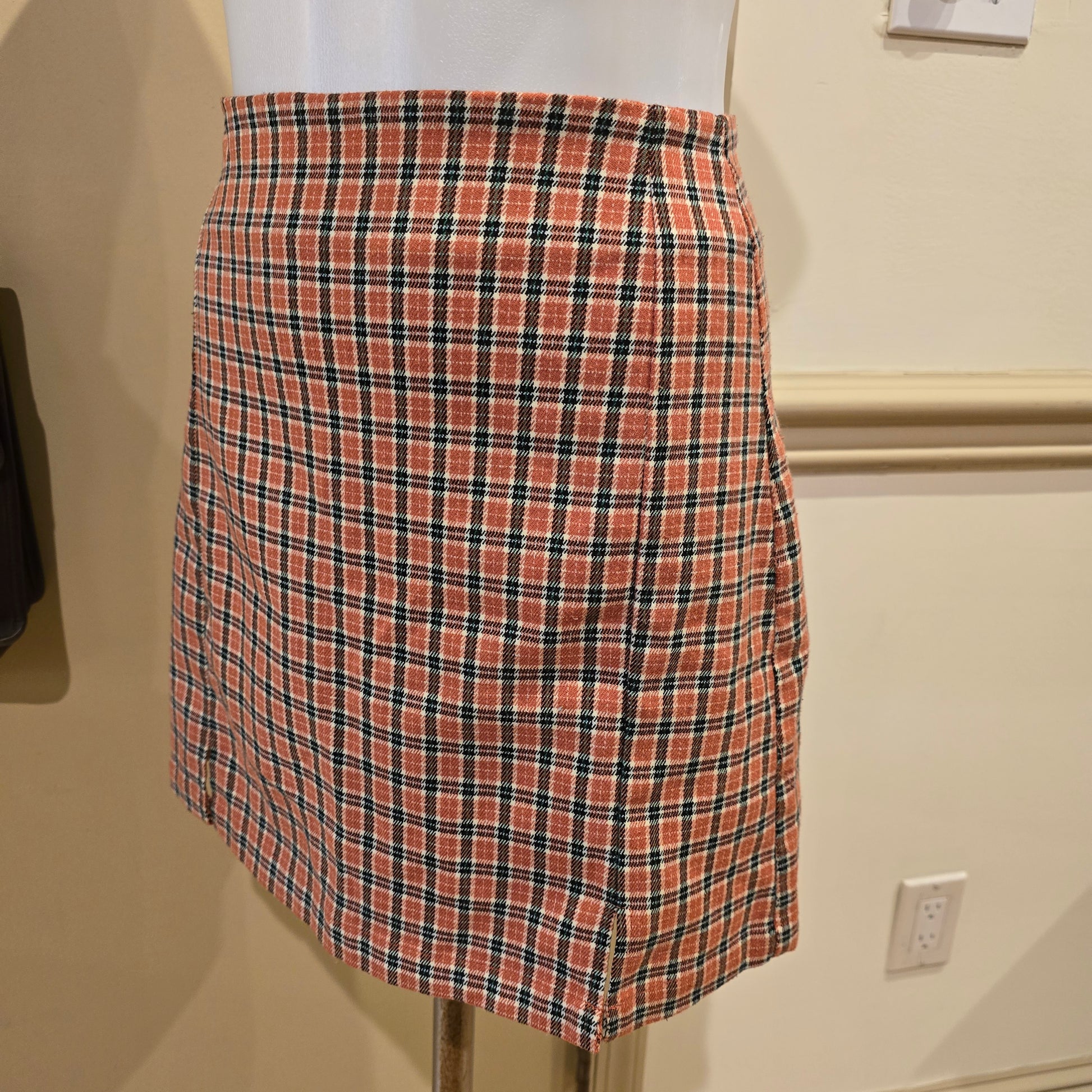 Orange, black, green and white plaid mini skirt by J. Galt.